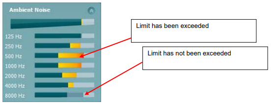 The ambient noise monitor uses a dedicated microphone that continuously monitors the test environment and displays when noise is exceeding recommended levels.
