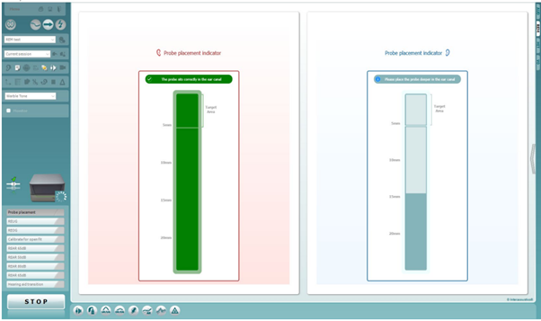 The Probe Placement Indicator is an easy-to-use feature that provides assistance with placement of the probe when performing real-ear measurements. This feature can be added as a test in the REM module.