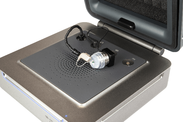 Different styles of hearing aids can be fitted in the coupler using different adaptors, most of which you would be familiar with. There is now a new adaptor for couplers for thin tube and custom fittings. These are called Aidaptors™.