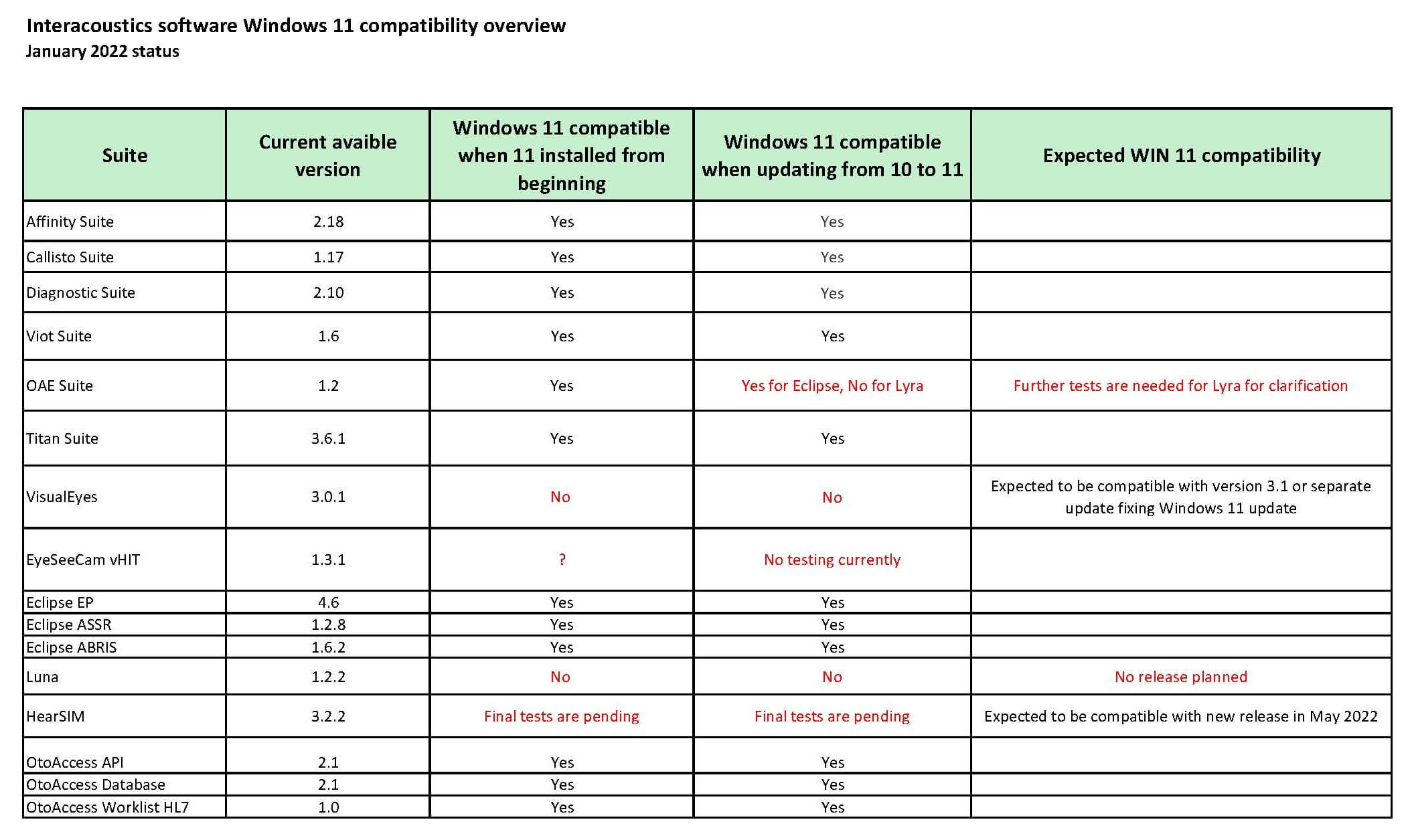 - The majority of Interacoustics software suites are compatible with Windows® 11 - both when Windows® 11 is installed from the beginning and when updating from Windows® 10 to Windows® 11 - see overview below.